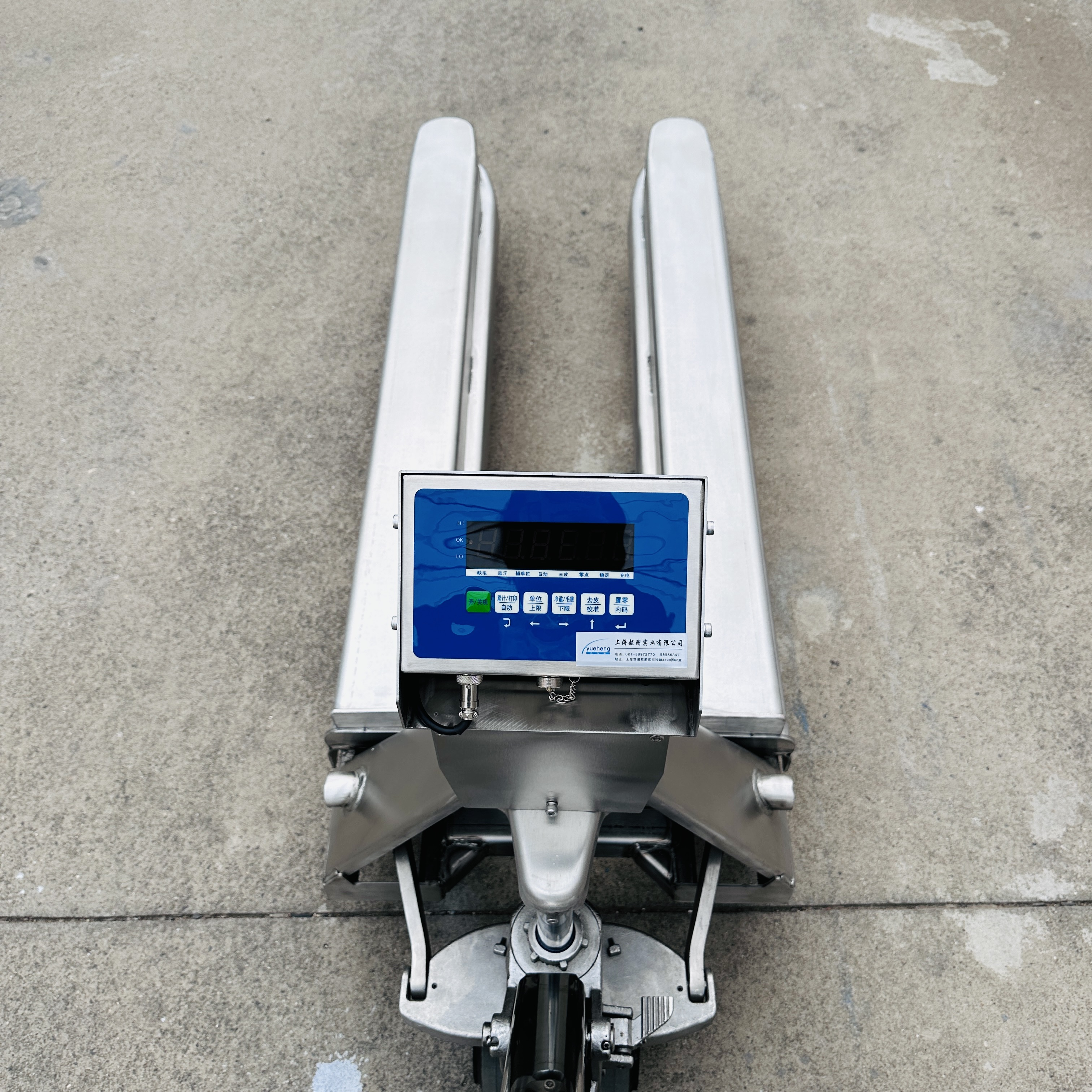 產品特點:1、雙(shuāng)層結構,獨特(tè)設計模型。2、材質:整體304不鏽鋼,應用(yòng)範圍更廣。3、叉車升降移動結構設計,簡單方便。4、精工焊接,長久使用。5、不鏽鋼秤台表麵拋光、拉絲處理。產品性能:★該產品主體為304不鏽(xiù)鋼(gāng)製造,車輪材(cái)質為(wéi)尼(ní)龍。★標配不鏽鋼防水稱重(chóng)顯示器。★整機防護等級為IP68(可衝洗)。★具有較強的抗腐蝕(shí)能力,一般用(yòng)於(yú)食品、化學品(pǐn)、水產品以及清潔物品的(de)搬運,也可在冷庫等環境中使用。★304#不鏽鋼打造,配不鏽鋼防腐蝕儀表,做工精美,結構(gòu)堅固耐用。★此秤是在以往的手推車的基礎上加裝了稱重裝置,中和了叉車和電子秤的各自特點,更大的提(tí)高了工(gōng)廠生產作業率。★實現了在搬運過程中(zhōng)完成稱(chēng)重功能,為工廠大大地(dì)節約了時間。★叉車秤功能(néng)特點整秤的樣式和以往使用(yòng)的手推車一樣,隻不過在各個部位都加強,使它更(gèng)結(jié)實、更耐用,秤(chèng)台由液壓手動搬運機構和稱重元件組成。★專用傳感器、專用(yòng)稱重儀表(biǎo)、置零、去皮、累計等功(gōng)能;單位可切換(kg/1b)。★稱量精(jīng)度高、性能穩(wěn)定。 ★叉車秤由雙層不鏽鋼秤體、尼龍(lóng)移動輪、傳感器、接線盒,不鏽(xiù)鋼液壓缸,拖動手柄組(zǔ)成。 ★充電電池供電,充電一次可(kě)連續工(gōng)作70小時,可(kě)實現置零、去皮,累計等功(gōng)能,如果選配帶(dài)打印功能儀表還可以將稱重日期、皮重、淨重跟編號都打印出來(lái)。