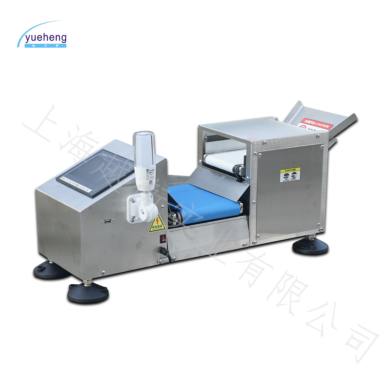 本設備以高速度(dù)之動態重量讀(dú)取方式檢(jiǎn)出生產線上(shàng)的產品之重量,可以精(jīng)確的檢測出連續生(shēng)產線中重量不(bú)合格的產品,並依此(cǐ)執行上下線判別或重量自動分選之控製,特別適(shì)用於(yú)包裝產品中的缺(quē)件檢查。