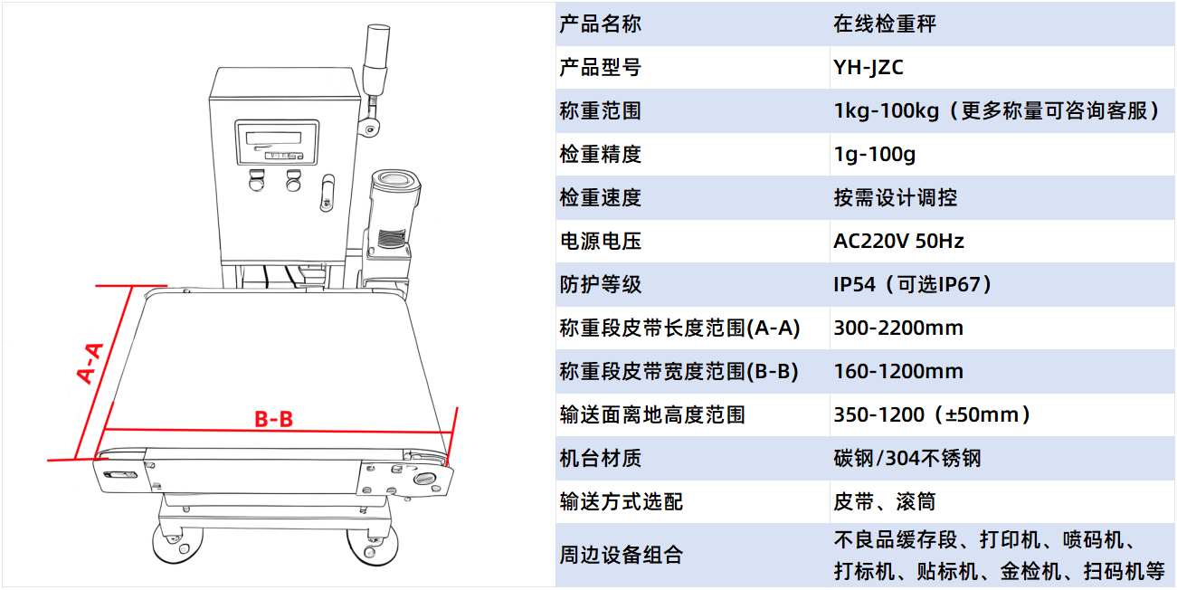 在線檢重秤可節省人力、提高效率,避免因包裝過量導致無謂之損失或因重量不足而引起之客(kè)戶抱怨,以提升客戶(hù)之滿意度,為自(zì)動生產線及包(bāo)裝線上(shàng)之合(hé)適(shì)品檢設備.